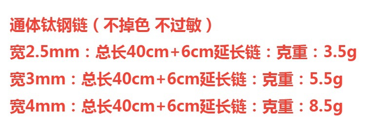 Color: 2.5mm (titanium steel chain 40+6cm)