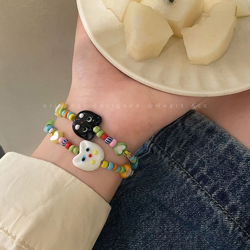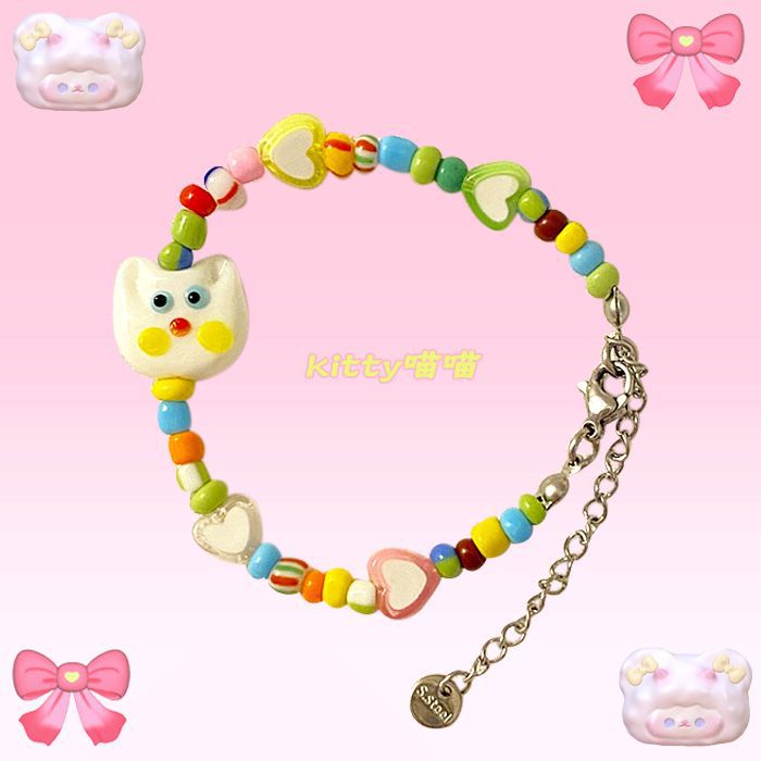 kitty Cat Cartoon Color Love Beaded Bracelet New Childlike Cute Black and White Cat Bracelet Bracelet Wholesale