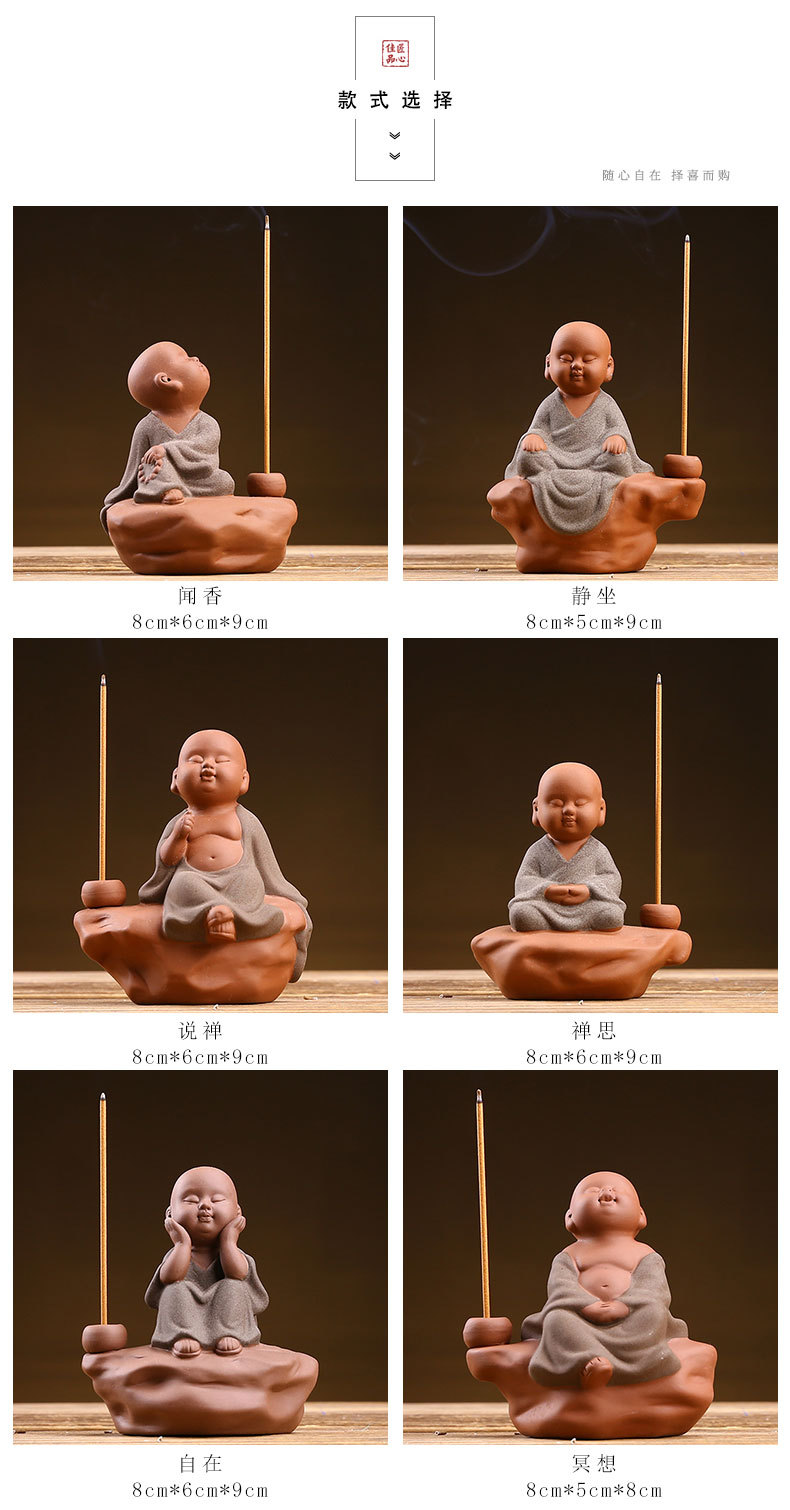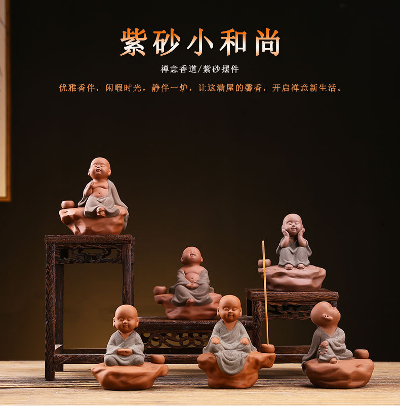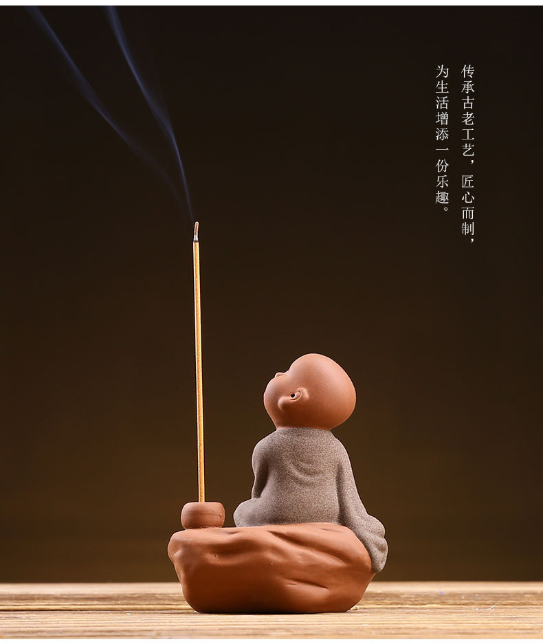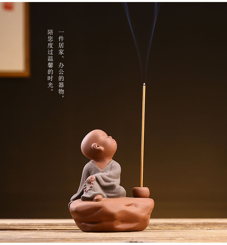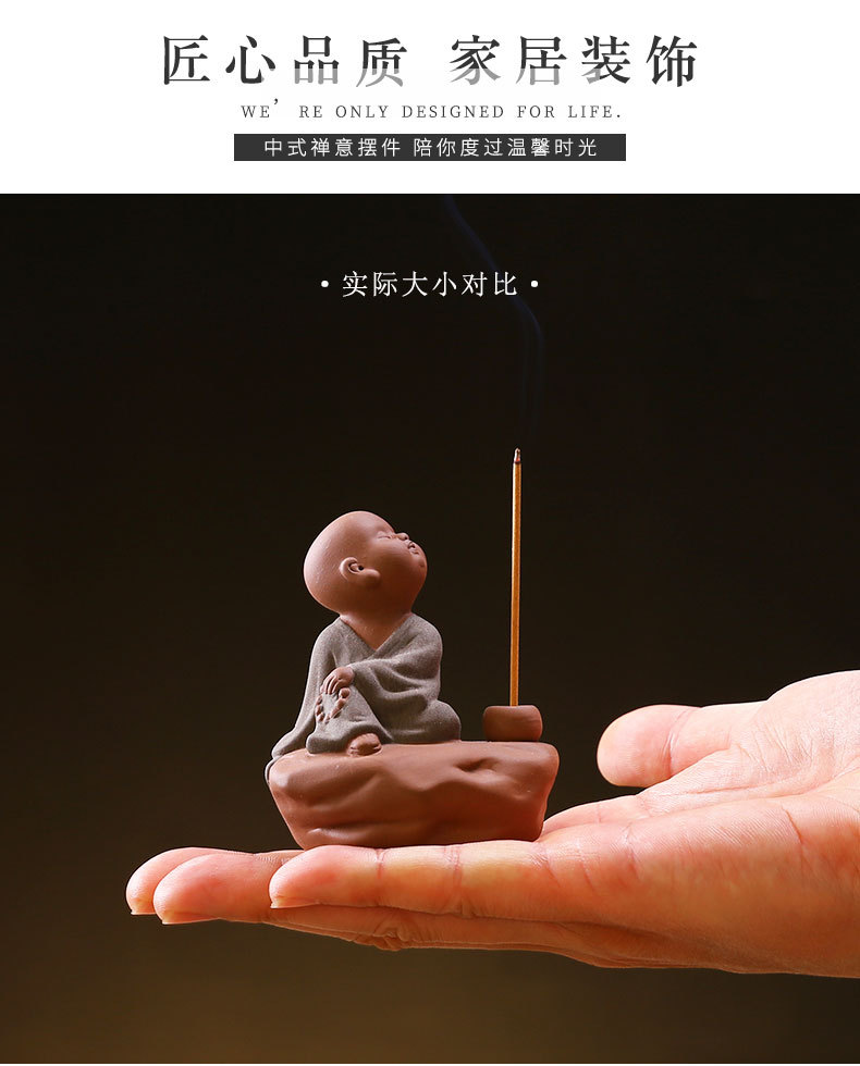 Zen Purple Sand Small Monk Line Incense Insert Ornaments Car-Mounted Household Indoor Living Room Tea Desktop Incense Dao Incense Holder Aromatherapy Stove