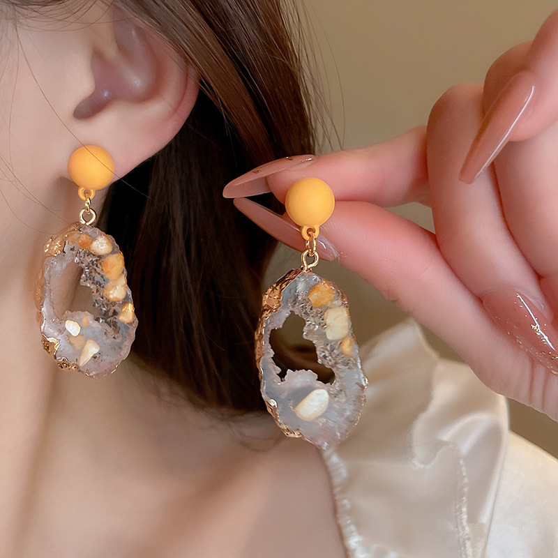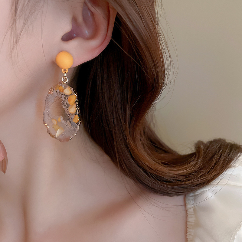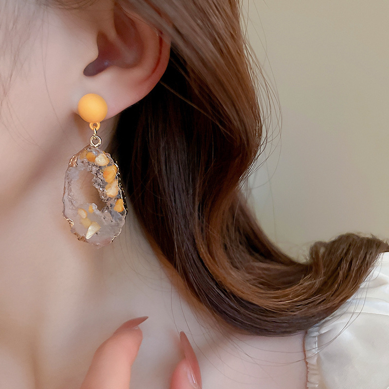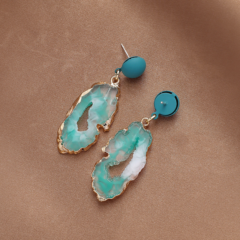 Personalized Resin Geometric Asymmetrical Silver Needle Earrings Fashionable High-End Ins Niche Elegant Popular Earrings for Women