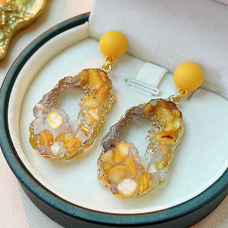 Color: Silver Needle-Yellow Geometric Irregular Earrings
