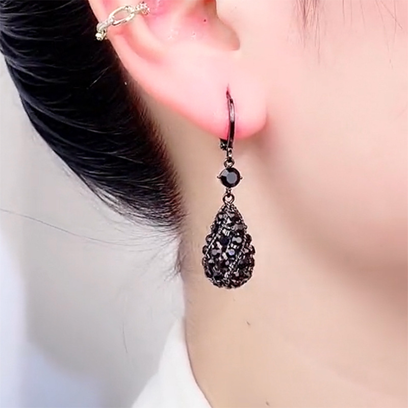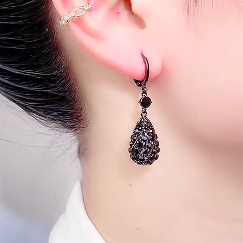 Black Diamond Water Drop Earrings, Elegant and Luxurious Earrings, Niche Design, Exquisite and Fashionable, 2023 New Trendy Peace Crystal