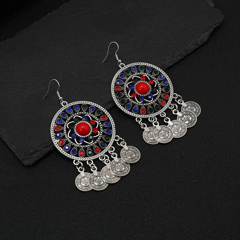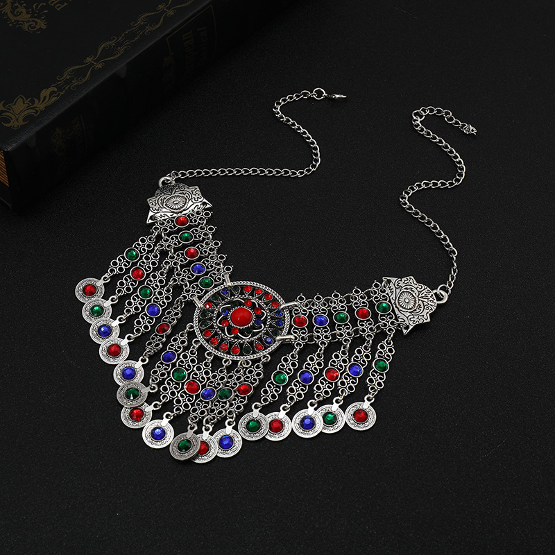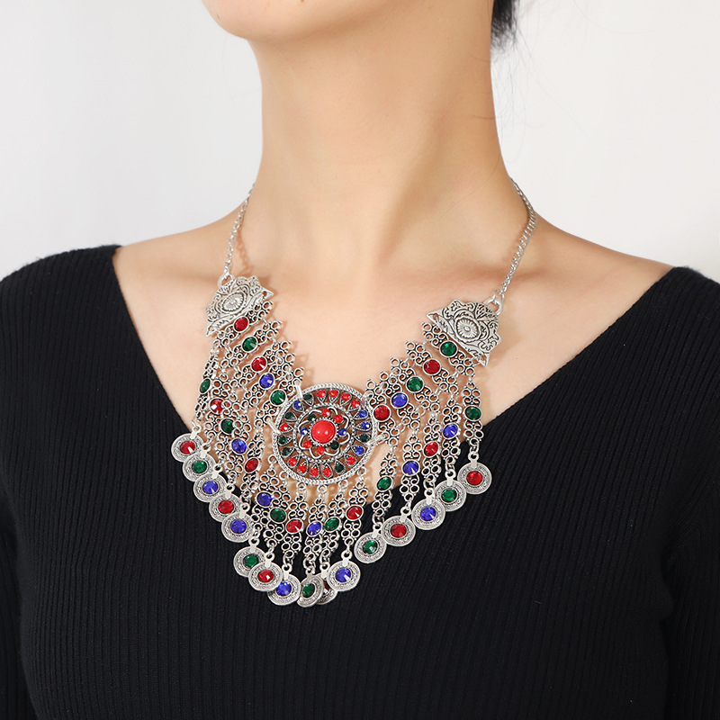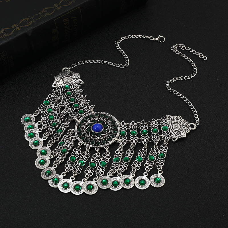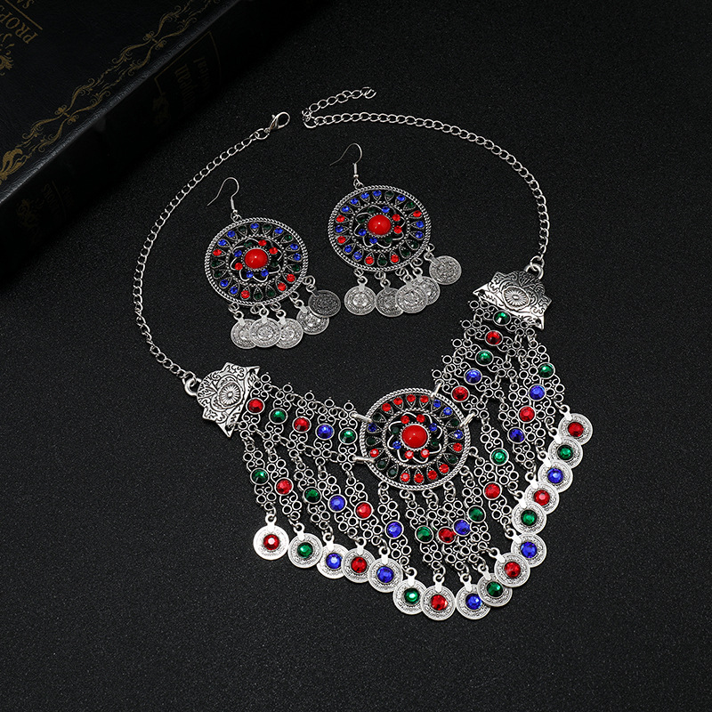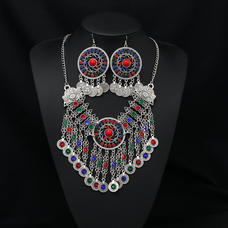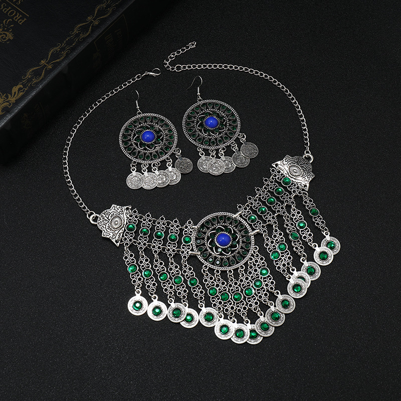 European and American retro Crystal coin clavicle chain necklace female personality exaggerated Bohemian tassel temperament earrings suit