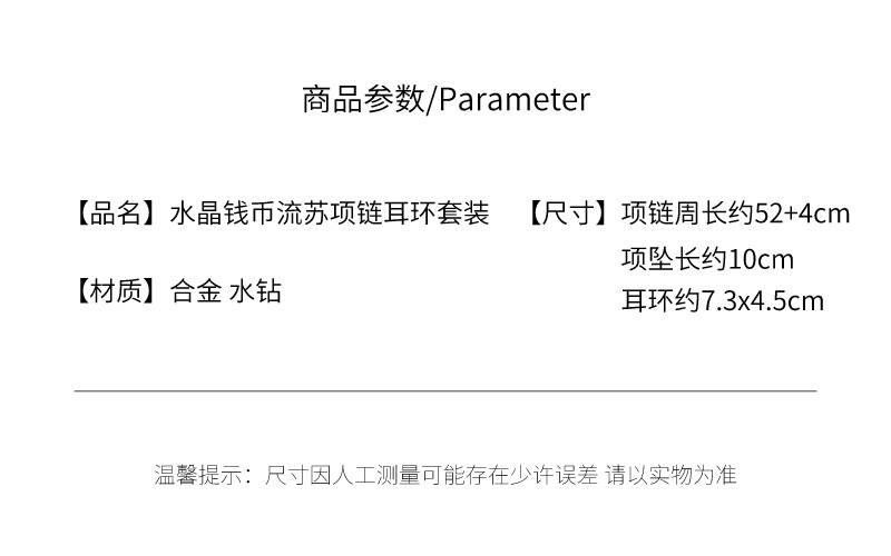 Item No.: (C238) crystal coin tassel necklace earrings suit