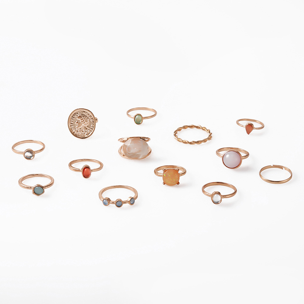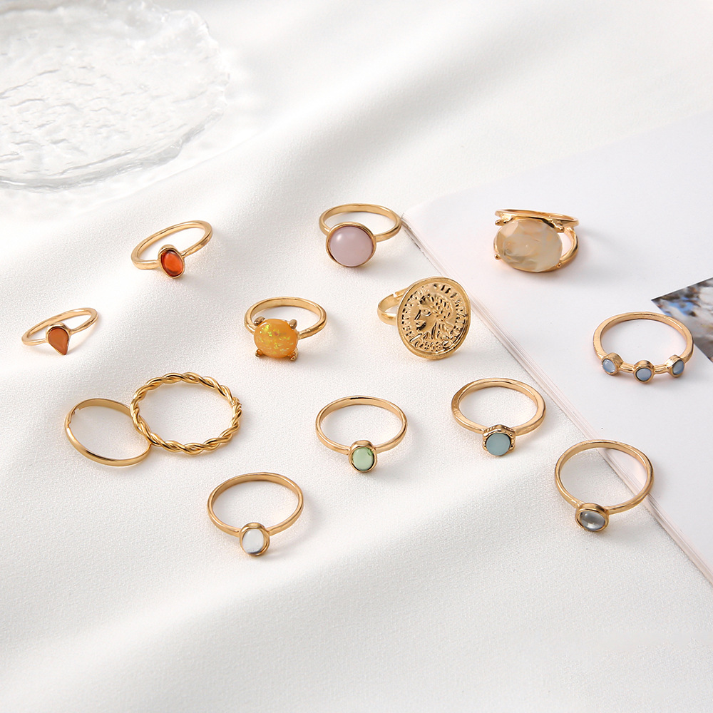 Amazon Inlaid Diamond Embossed Portrait Ring Set 13-Piece Set Creative Cold Style Baroque Retro Jelly Color Ring for Women