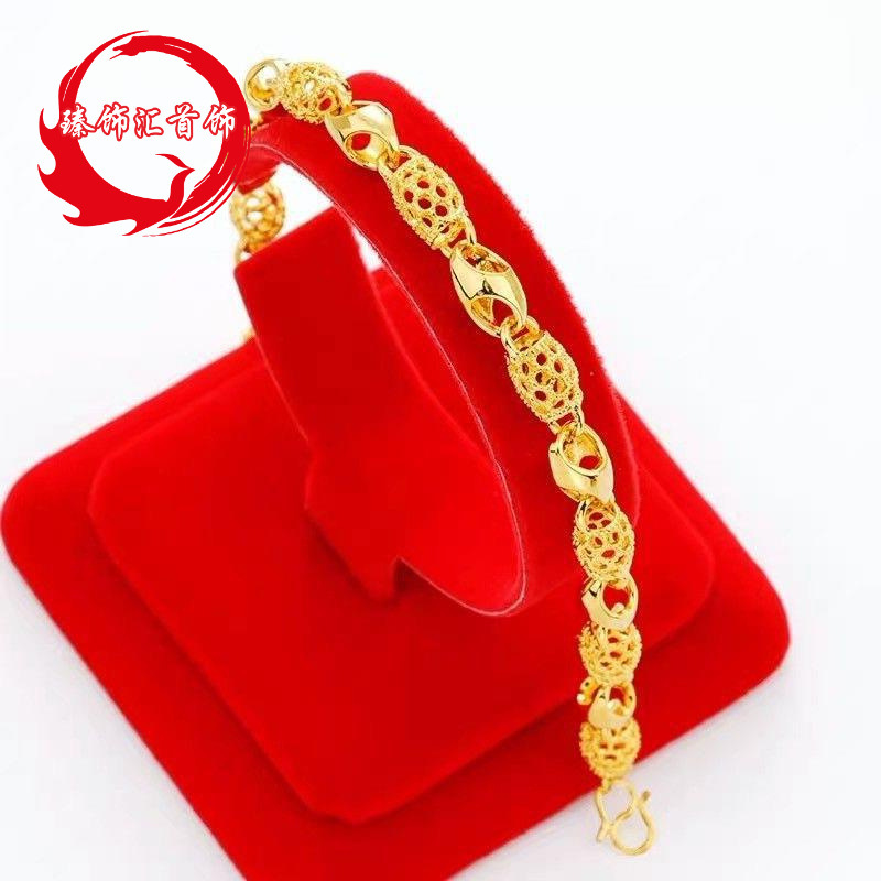 Genuine Gold Plated Exquisite Bracelet Women's Adjustable Women's All-match Gift Giving Love Lucky Wangfu Bracelet Gold Bracelet
