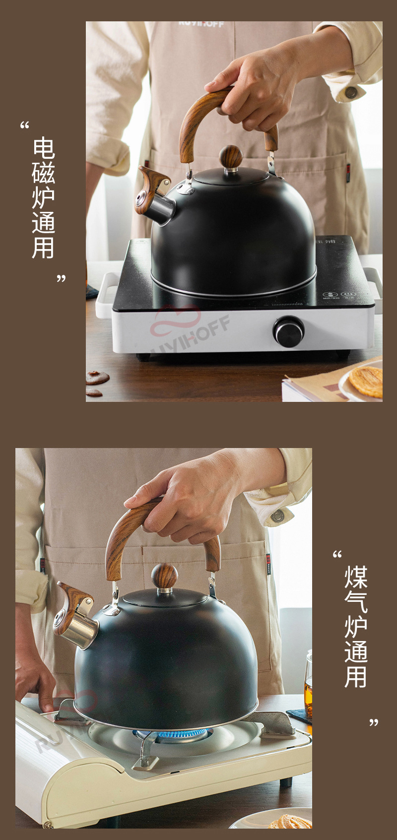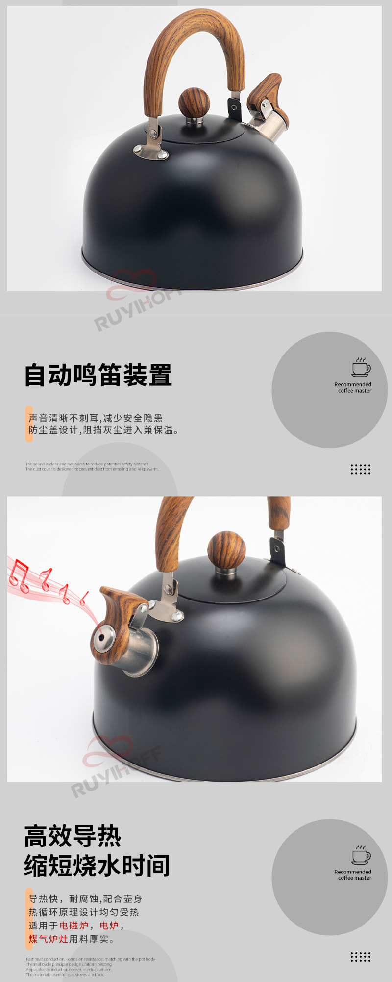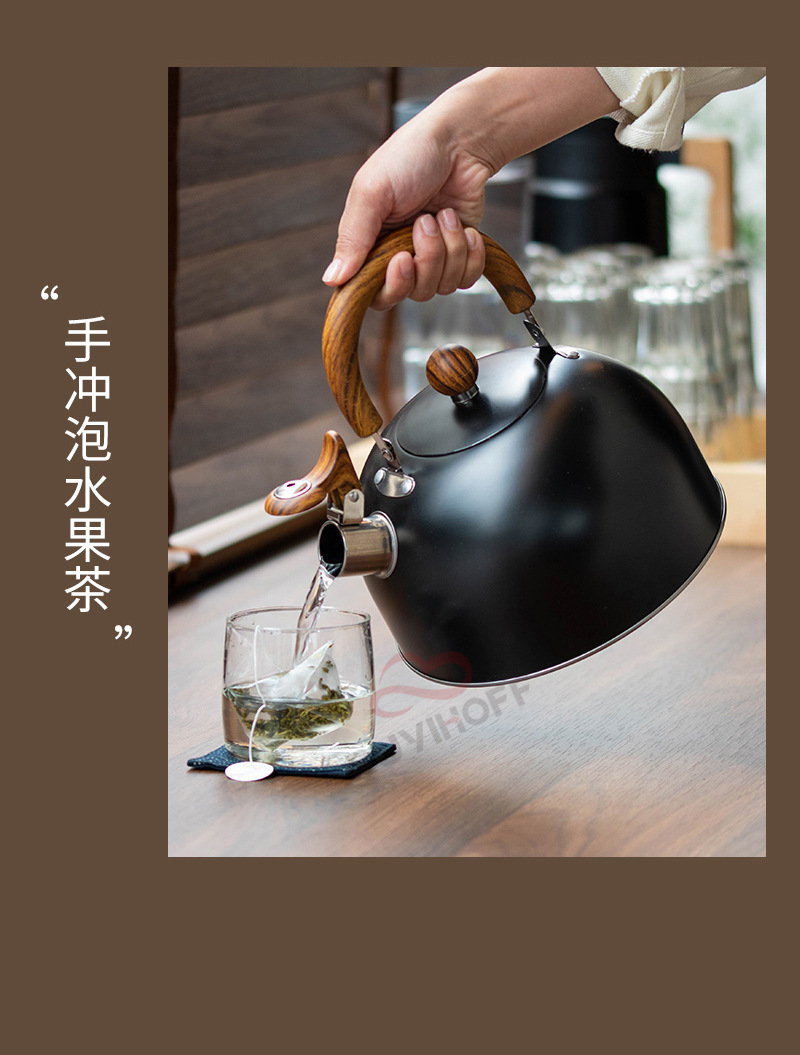 European-style whistle kettle boutique family bar wood grain handle stainless steel kettle 3L black whistle kettle
