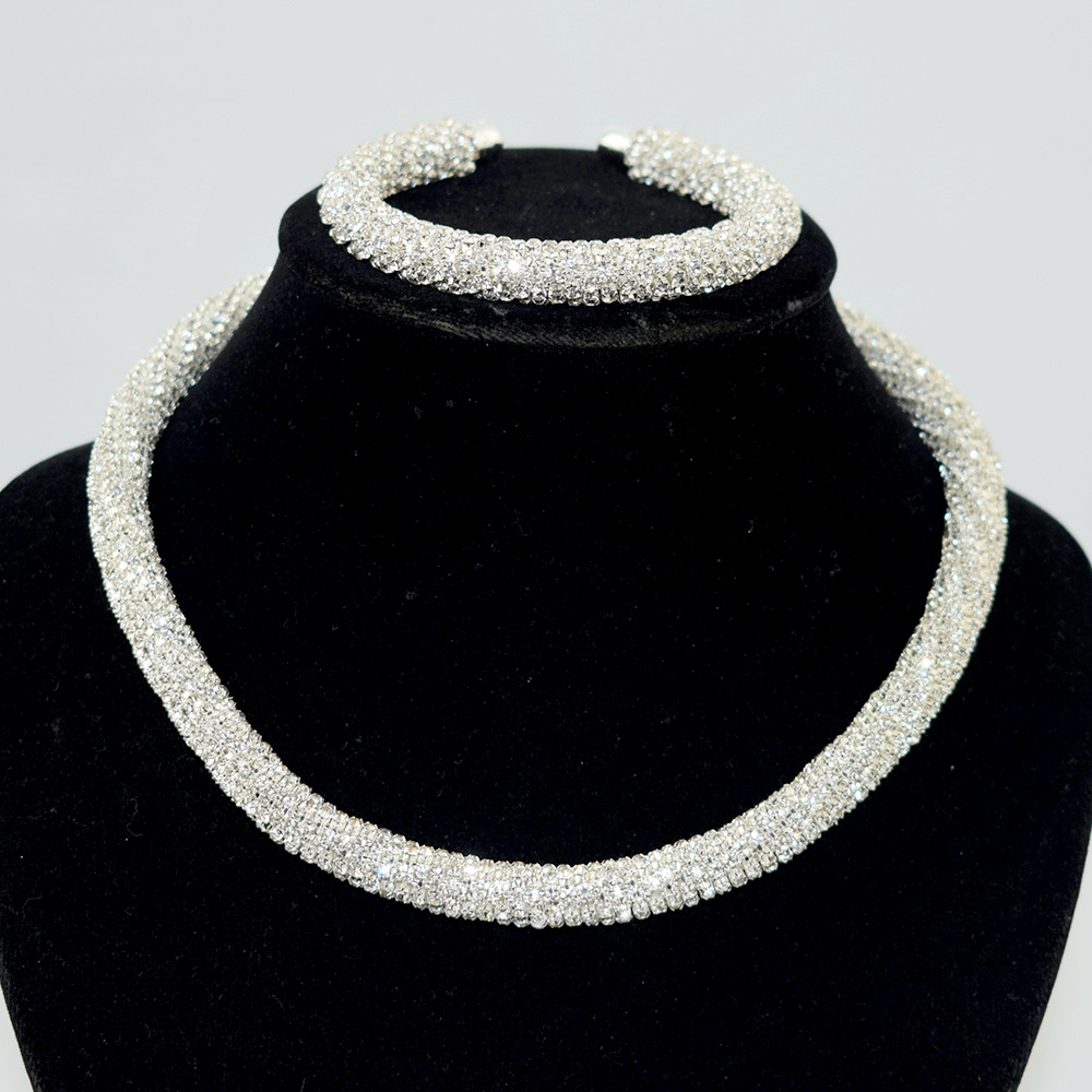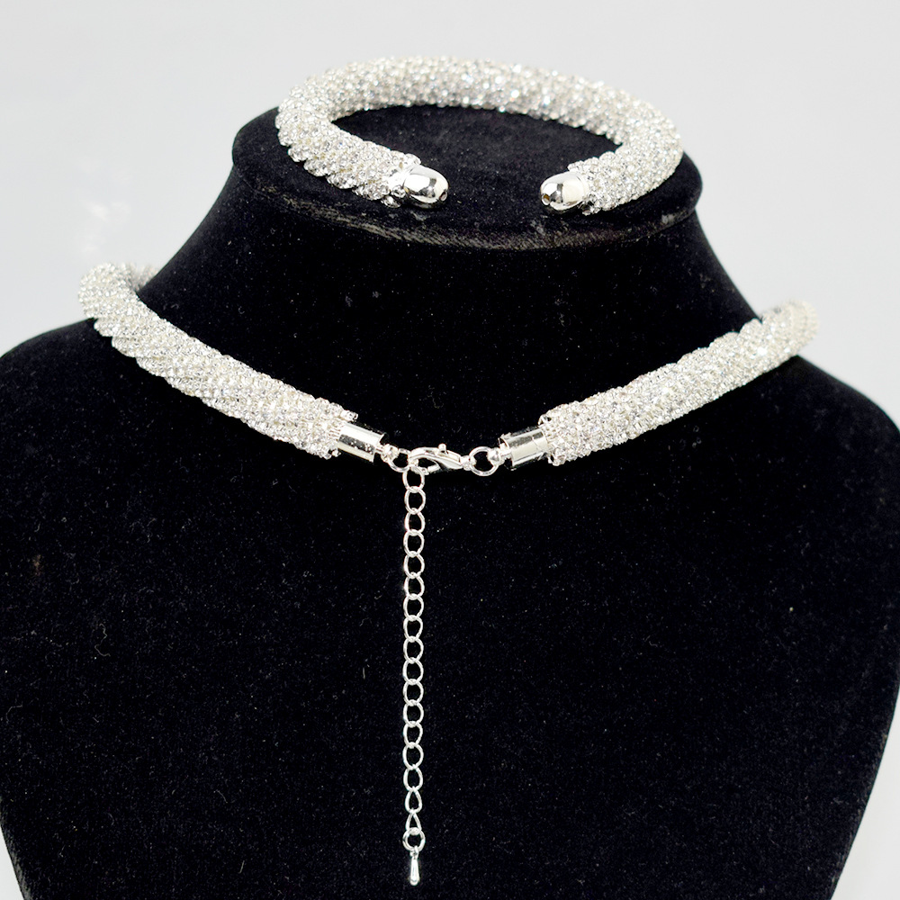 Color: Xl-2037 silver necklace and earrings 2-piece set ab diamond
