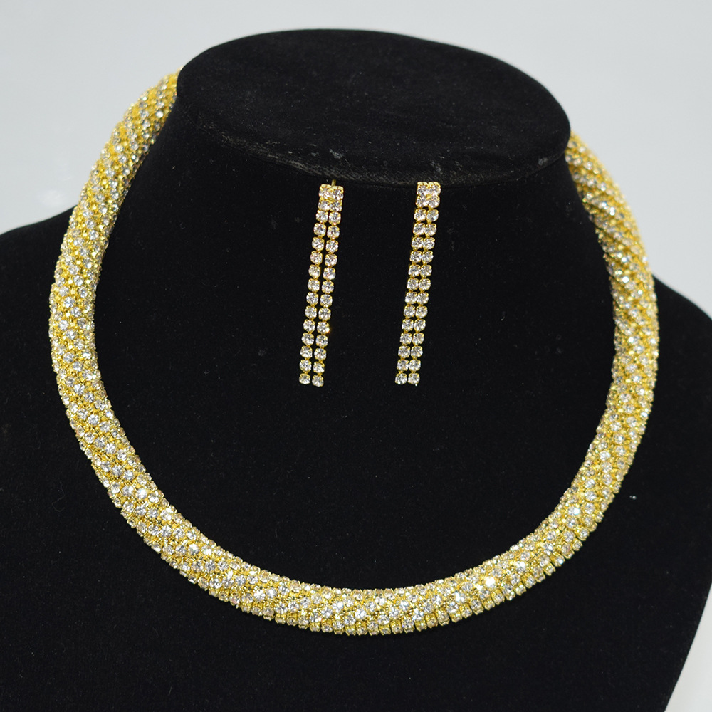 Color: Xl-2037 gold necklace earrings 2-piece set yellow diamond