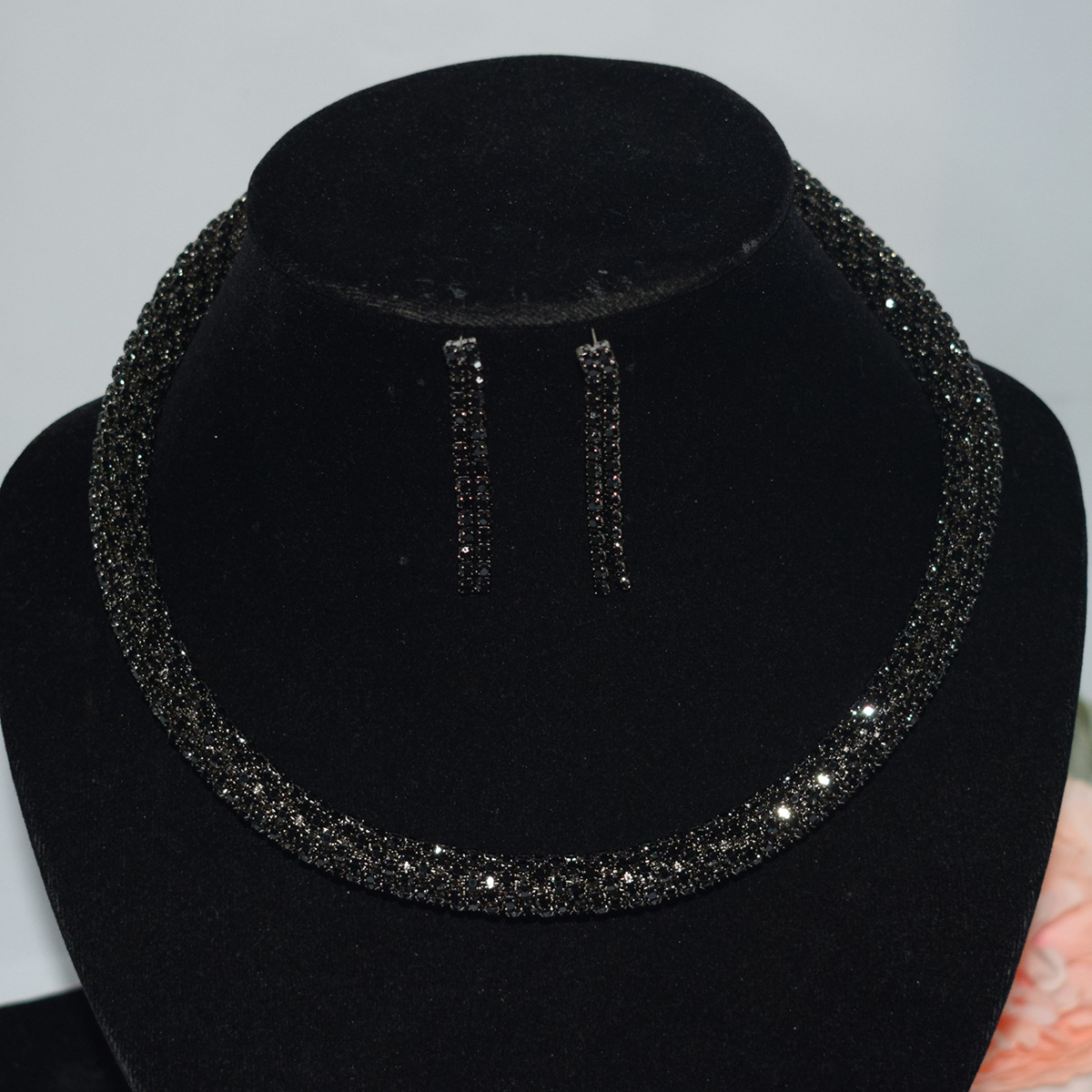 Color: Xl-2037 gunmetal black collar & earrings 2-piece set - black diamond