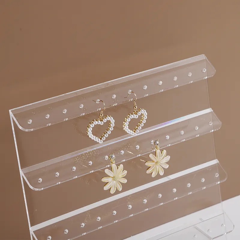 Acrylic transparent L-shaped countertop display stand organic glass 4-layer porous Jewelry earrings earrings display stand