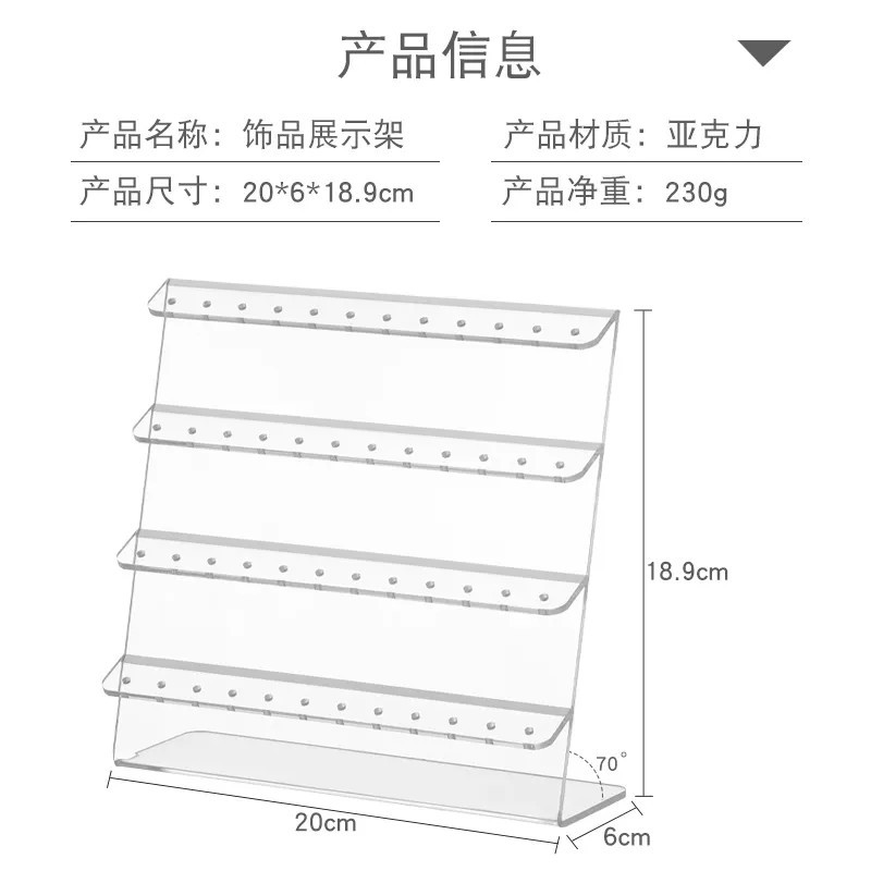 • 产品名称:亚克力透明L形台面展示架有机玻璃4层多孔珠宝首饰耳环耳钉陈列架