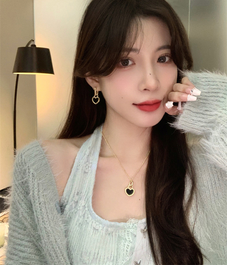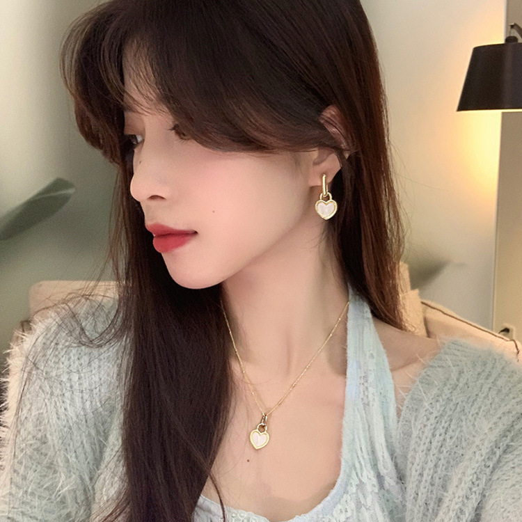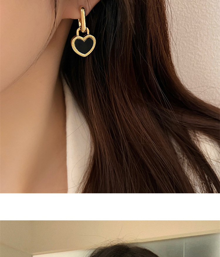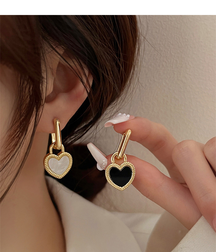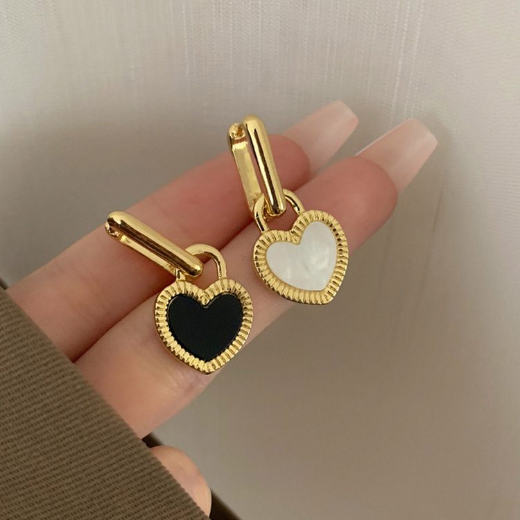 Black and white double-sided love lock earrings French retro high-end fashion commuter earrings exquisite Joker earrings wholesale