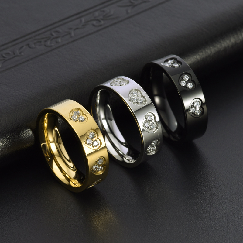 Ring: Korean-style Korean-style Men's and Women's Glossy Love Diamond-encrusted Titanium Steel Ring Distinctive Simple Couple's Ring Jewelry Ring Accessories