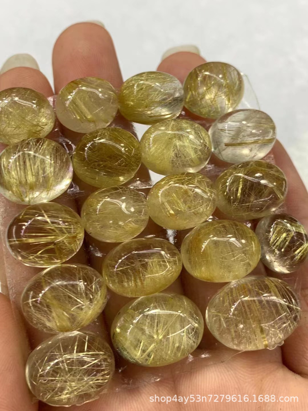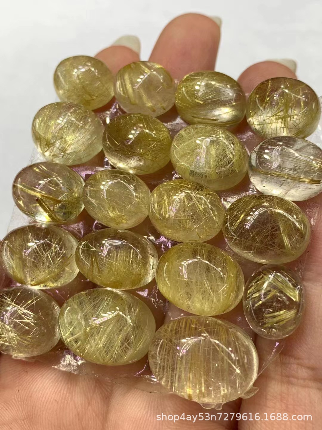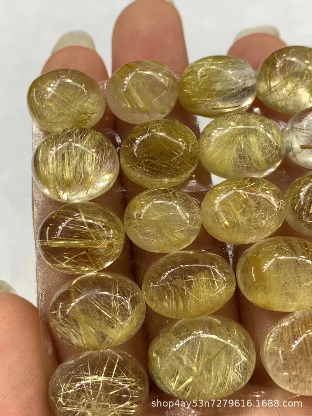 Natural golden hair Crystal bare stone ring surface crystal transparent fluorescent hair clear DIY natural golden hair Crystal wholesale