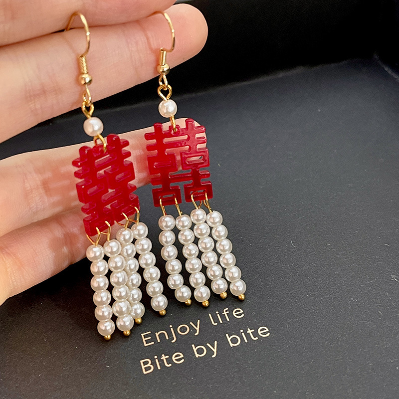 Color: E0118 red double happiness earrings (s925 silver needle)