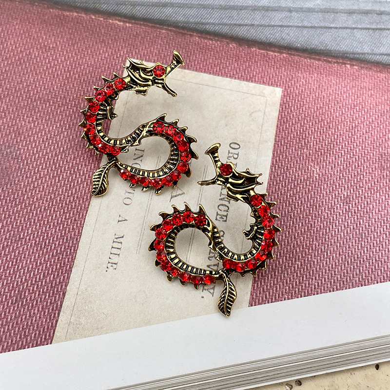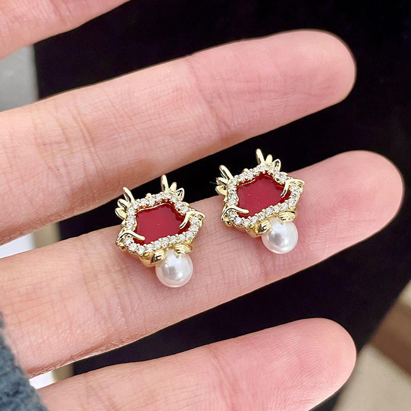 Color: 2312153b red dragon diamond stud earrings (s925 silver needle)