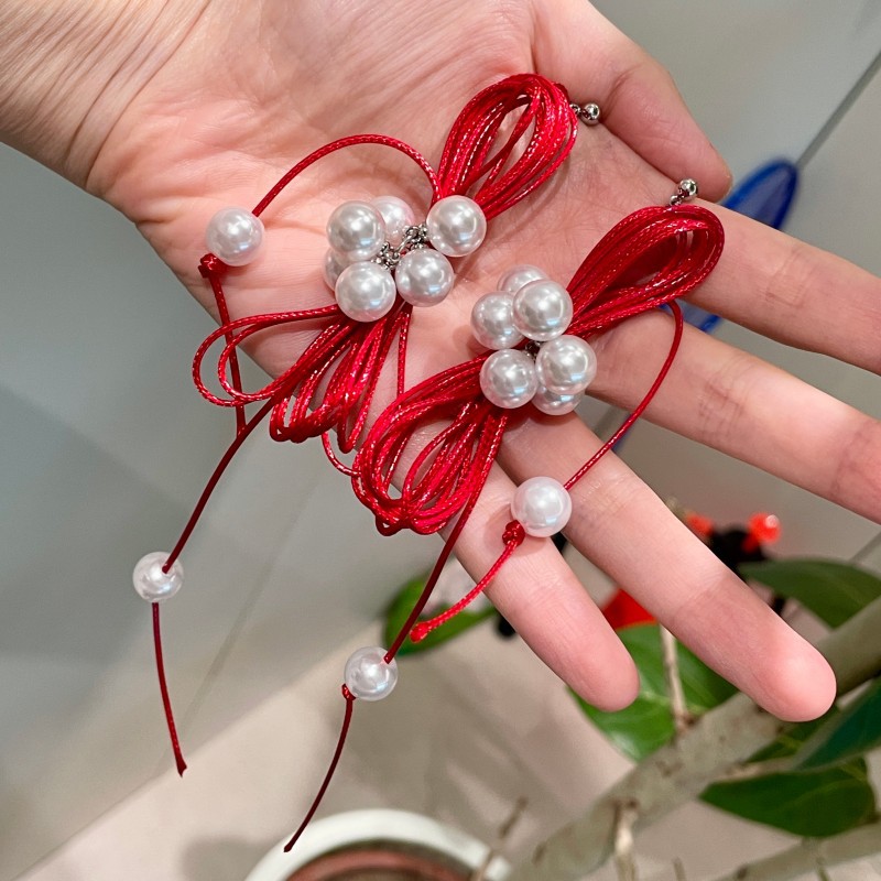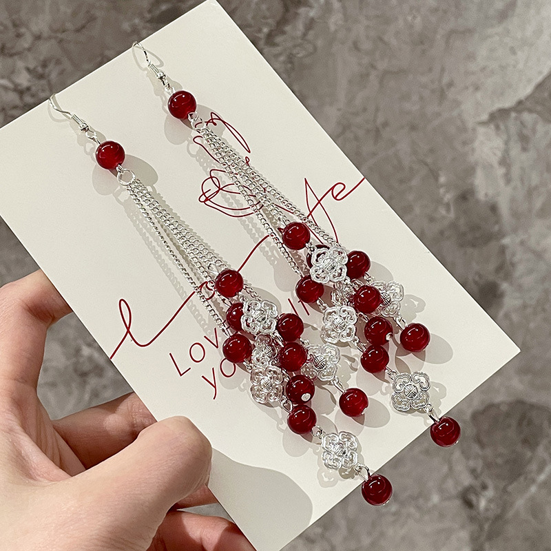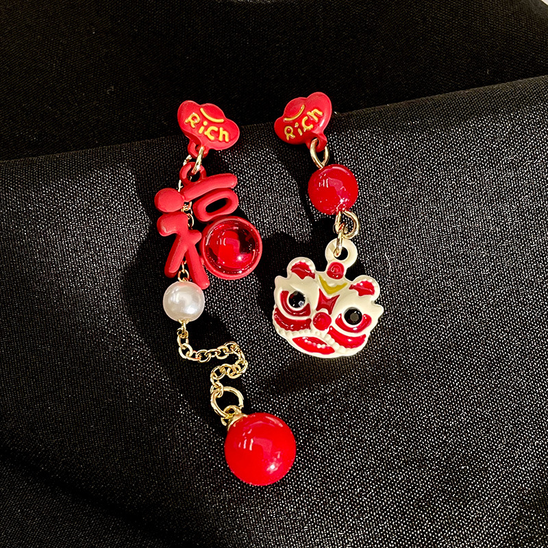 Color: 2312338 fu character red bead earrings (s925 silver needle)