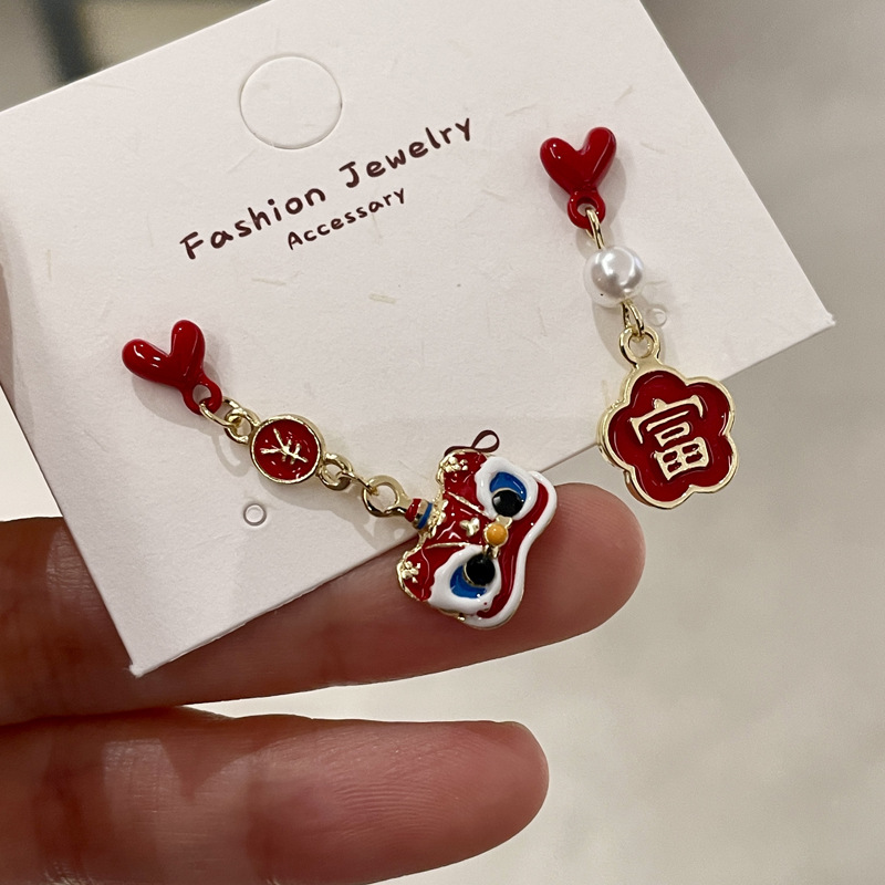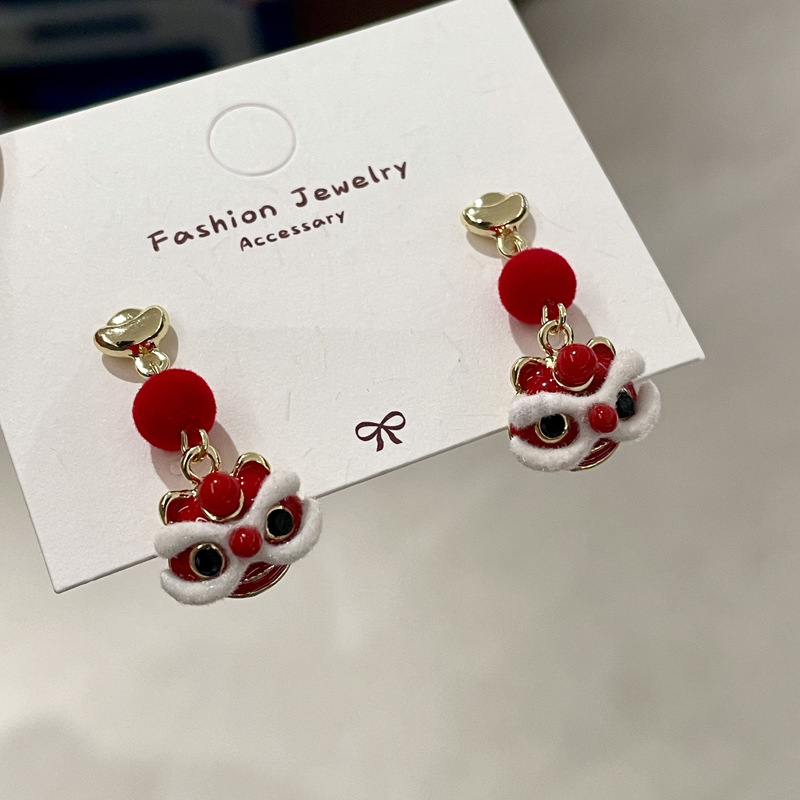 Color: 2412163e fu character red tassel lion awakening (s925 silver needle)
