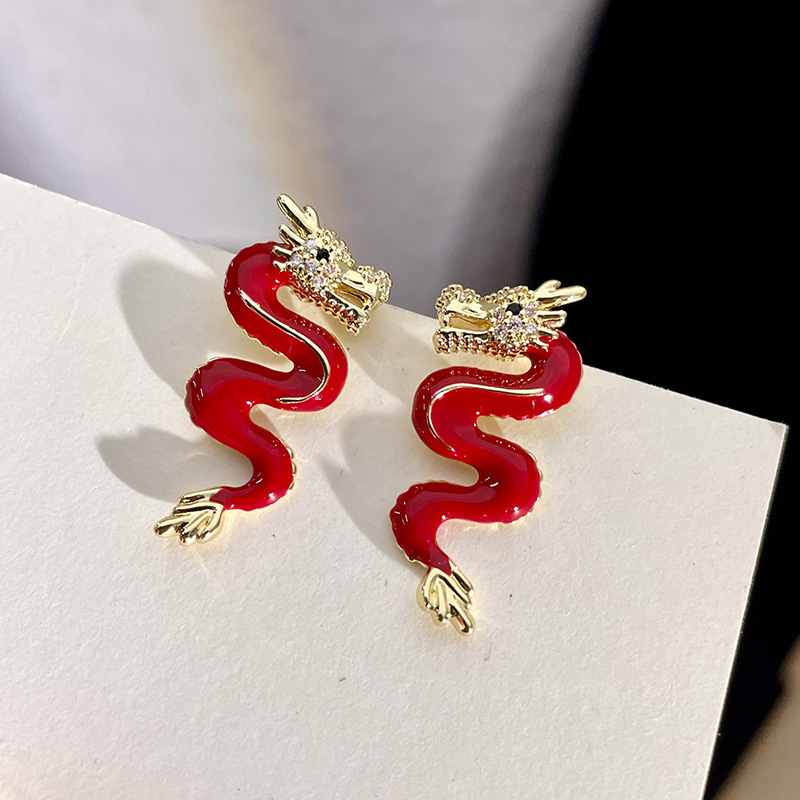 Color: 2312155 red gold dragon earrings (s925 silver needle)