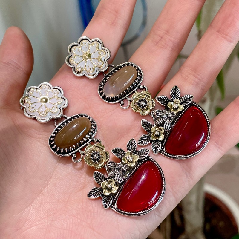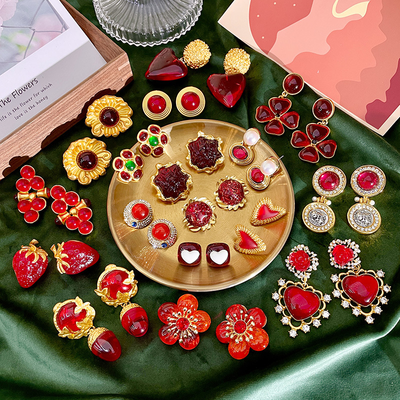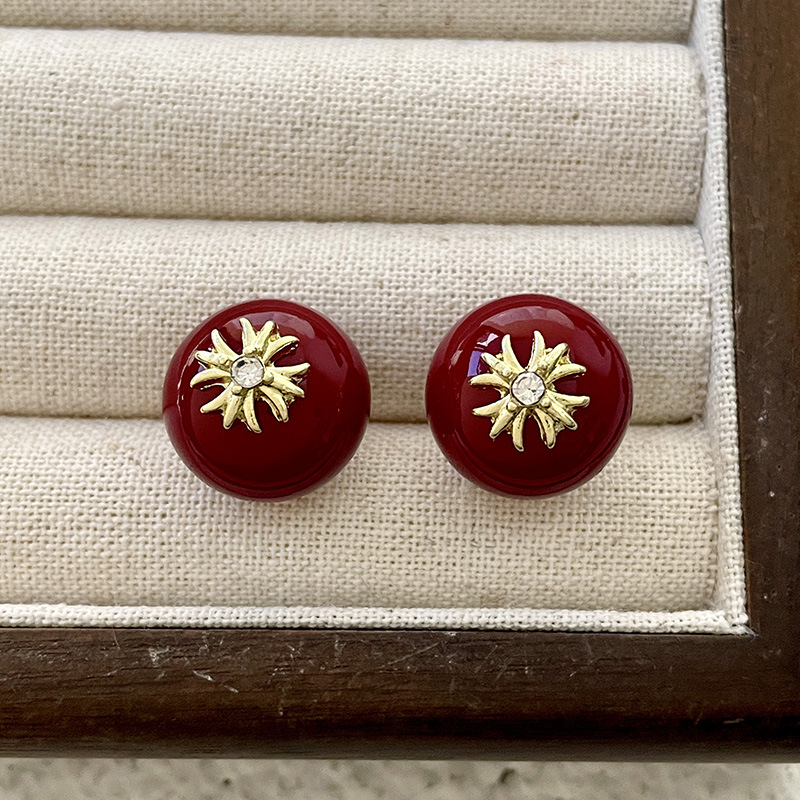 Color: 2405039c red diamond metal flower (s925 silver needle)