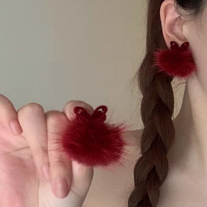 Color: 2412090a burgundy plush earrings (s925 silver needle)