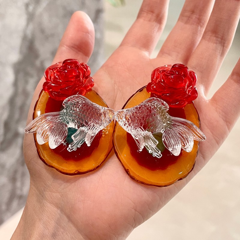 Color: 2504095 flower goldfish exaggerated earrings (s925 silver needle)