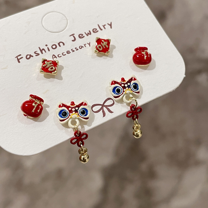 Color: 2412163f lucky bag chinese knot lion awakening six-piece set (s925 silver needle)