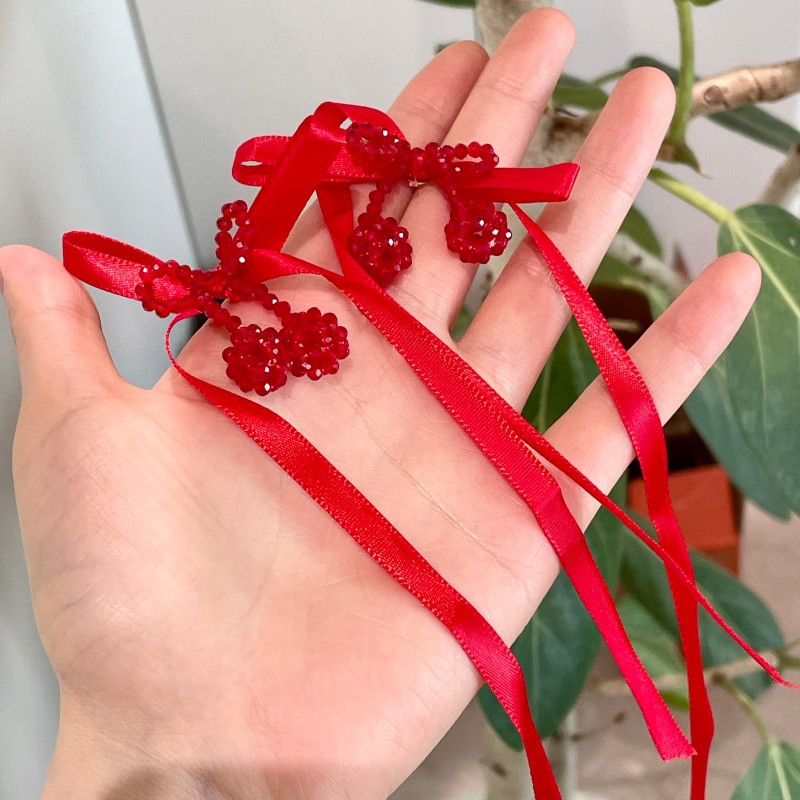 Color: 2505113 red crystal ribbon bow earrings (s925 silver needle)
