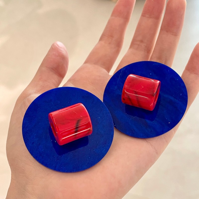 Color: 2505126 red and blue contrasting round earrings (s925 silver needle)