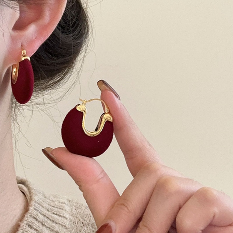 Color: 2507297 red smudged u-shaped earrings (s925 silver needle)