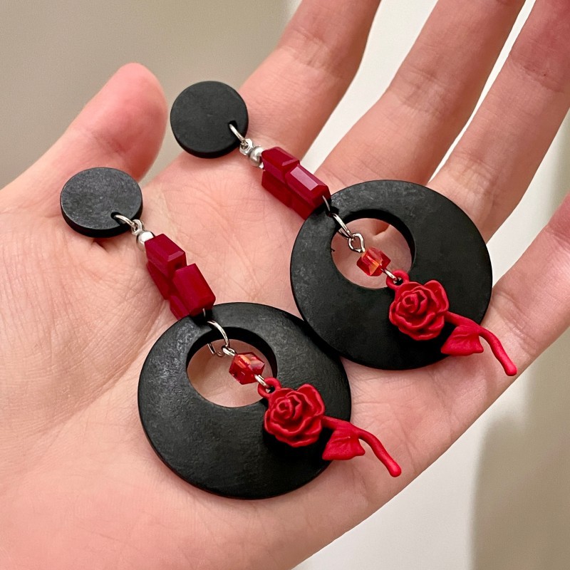 Color: 2404341 red rose cross earrings (s925 silver needle)