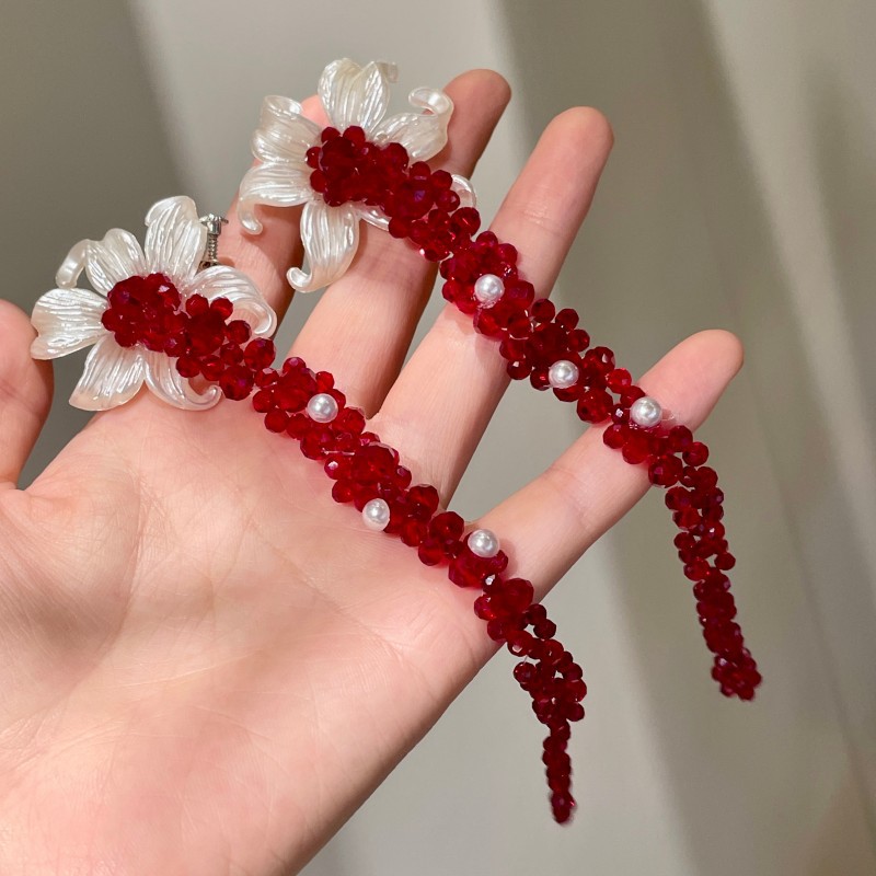 Color: 2510152 red crystal flower pearl double-sided earrings (s925 sterling silver posts)