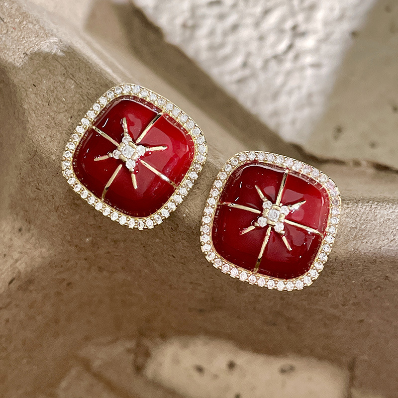 Color: 2506218 red square geometric earrings (s925 silver needle)