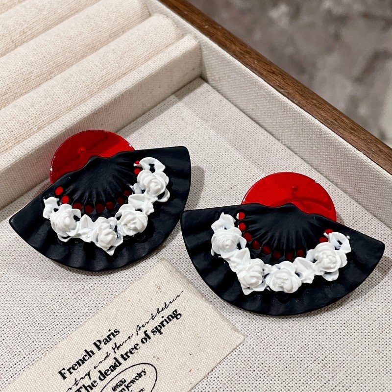 Color: 2510157 red and black contrasting color fan-shaped earrings (s925 silver needle