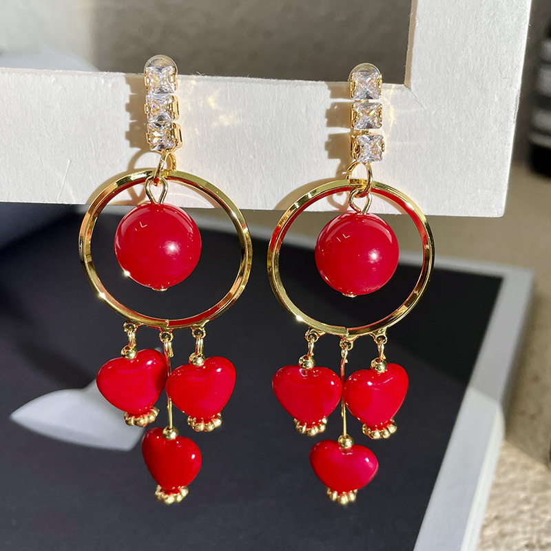 Color: 2401085 red love pearl zircon earrings (s925 silver needle)