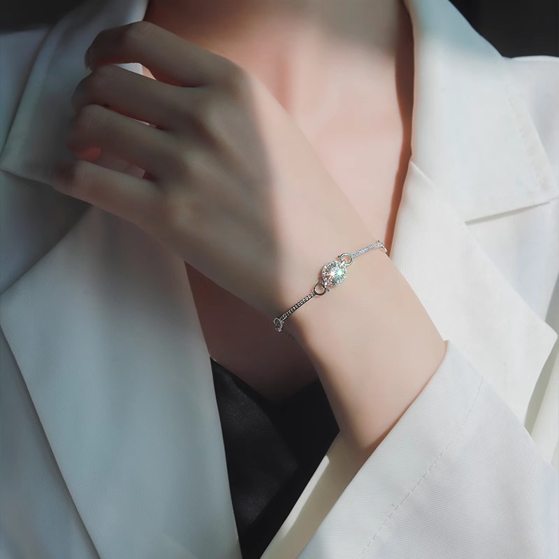 925 Sterling Silver Bracelet Wholesale Moissanite Bracelet Simple Round Bag Women's Bracelet Bracelet Live Supply Jewelry Ins