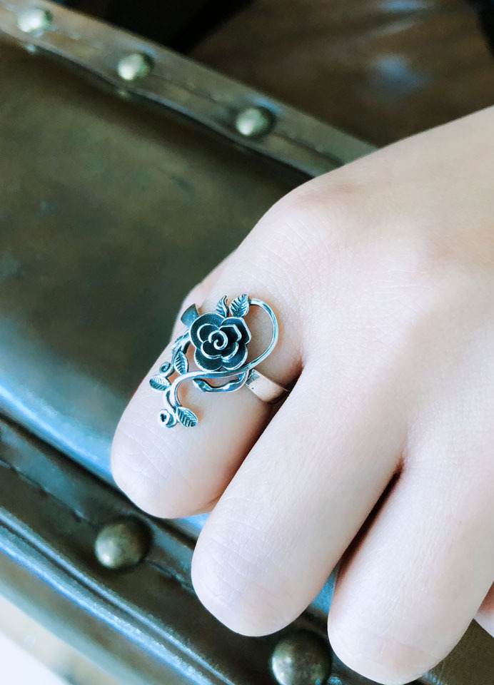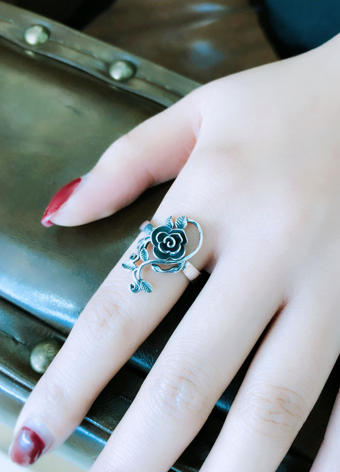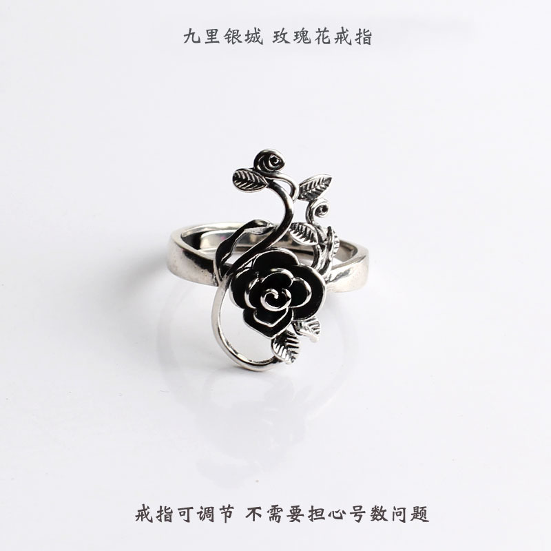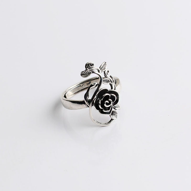 Chiba Vintage All-match Rose Flower Ring Women's Trendy Thai Silver Style Old All-match Fashion Hollow Mori Flower Ring