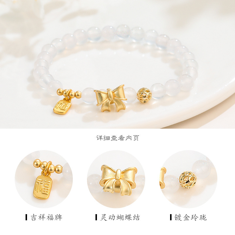 [Princess on the Run] Natural Duobao Crystal Bracelet Women's Clear Sweet Bow Hollow Ball Beaded Bracelet