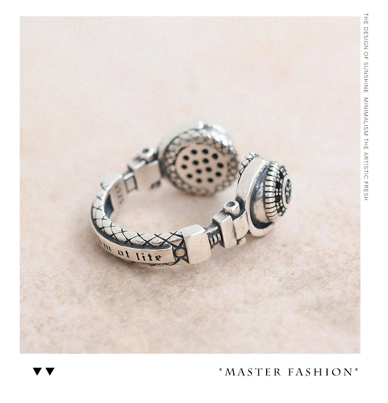 Chiba Retro Wearable Earphones Cool Thai Silver Ring Female Niche Designer Music High-End Trendyy Hip-Hop Male
