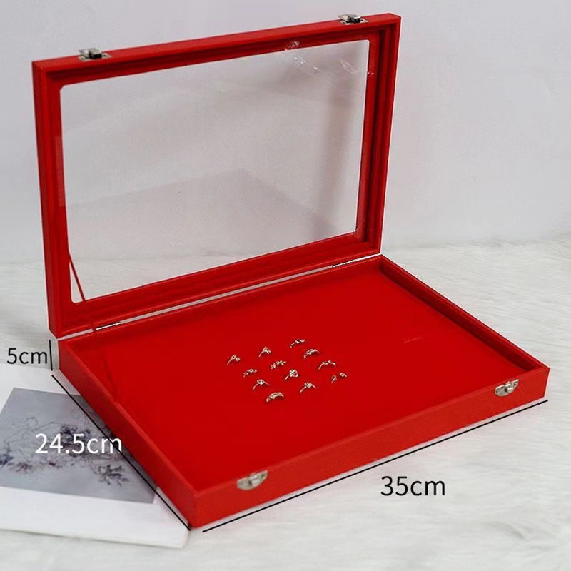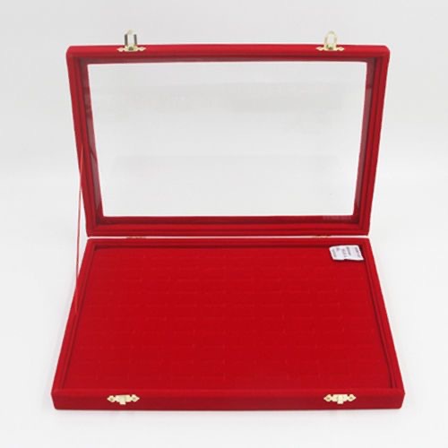 100-hole Red large ring earrings jewelry storage box tray with lid Plaid jewelry box jewelry wholesale
