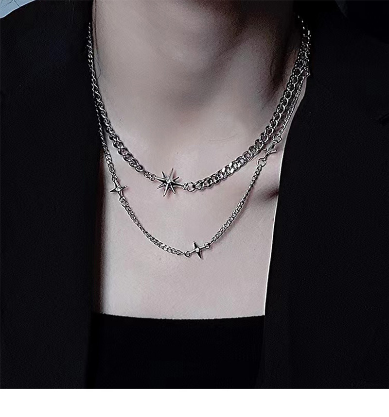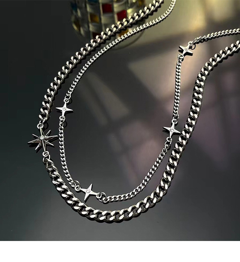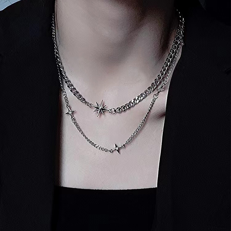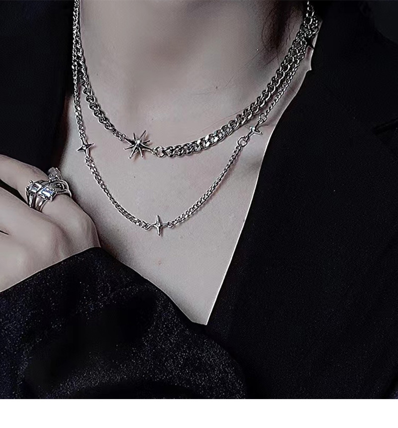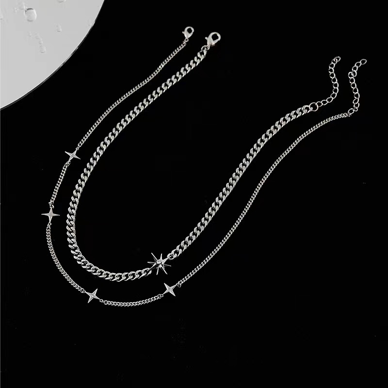 Niche design double-layer stacked star chain stitching necklace female ins hip hop sweet cool cold wind clavicle chain fashion