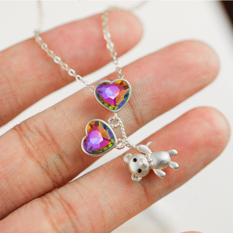 Cross-border explosions European and American style jewelry wholesale cartoon bear pendant cute children's love necklace niche design sense
