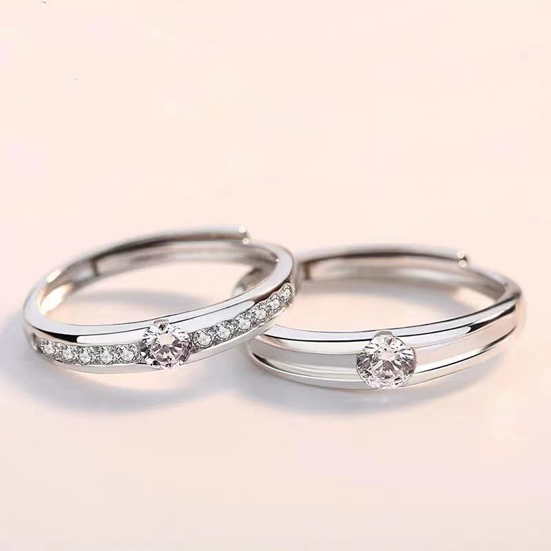 S925 Sterling Silver Clear Sweet Couple Ring for Men and Women Proposal Ring Silver Opening Ring for Women Sterling Silver Bracelet