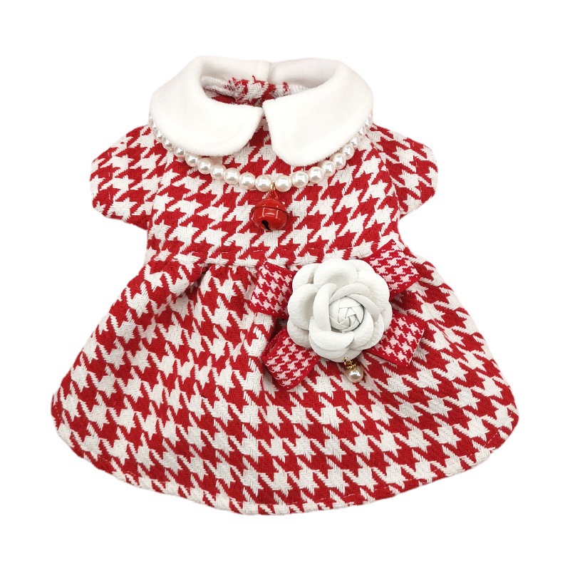 Color: Red houndstooth jacket skirt + necklace + corsage