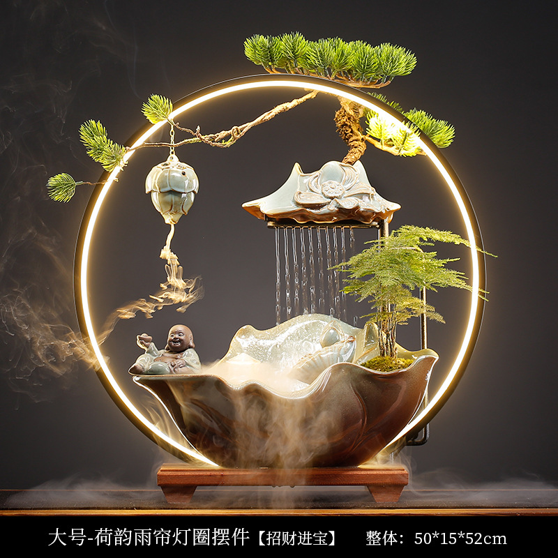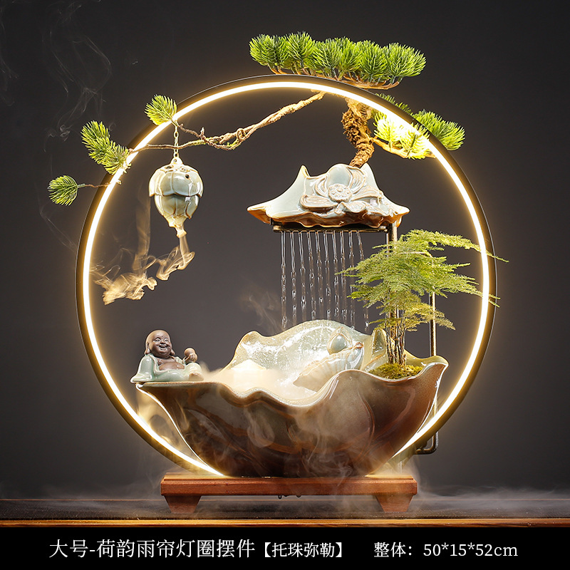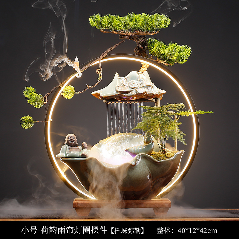 Color: Large-Lotus rain curtain [Tuo Maitreya + incense burner + incense + bamboo + atomization]]