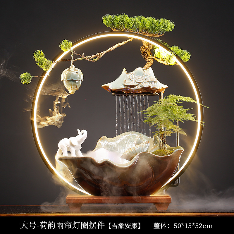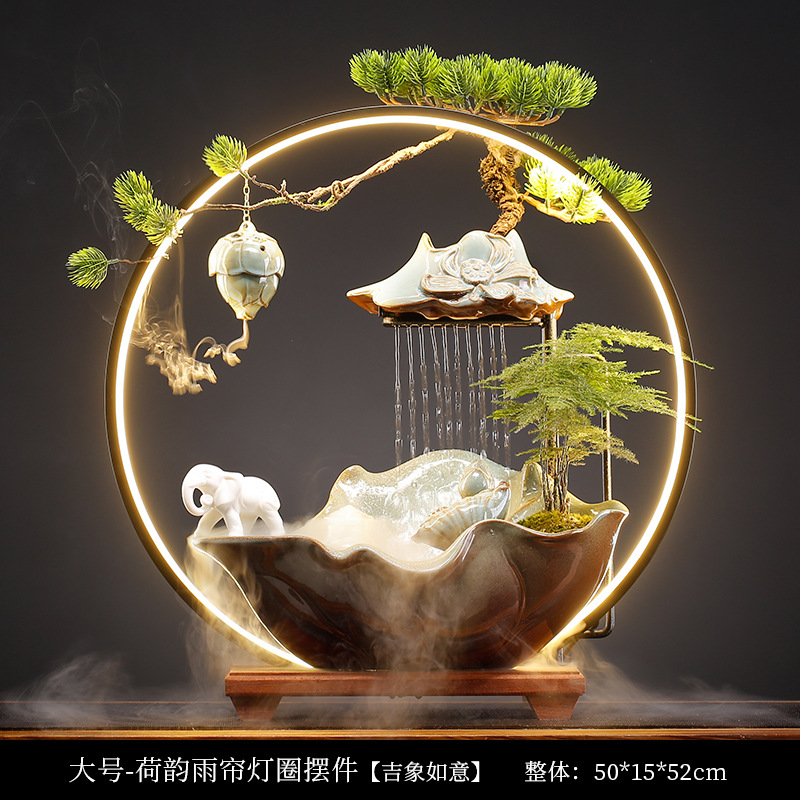 Color: Large-Lotus rain curtain [Lucky Elephant Ruyi + incense burner + incense + bamboo + atomization]]
