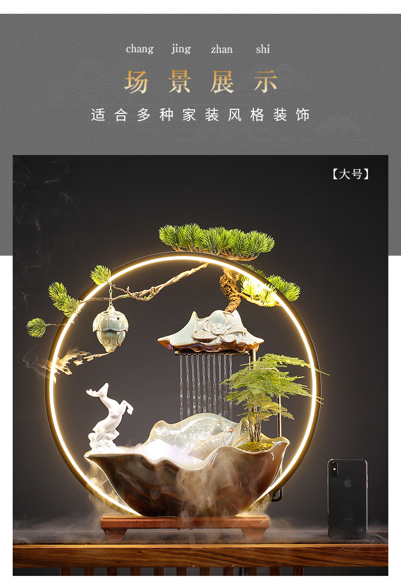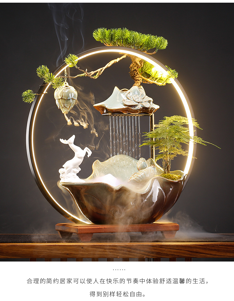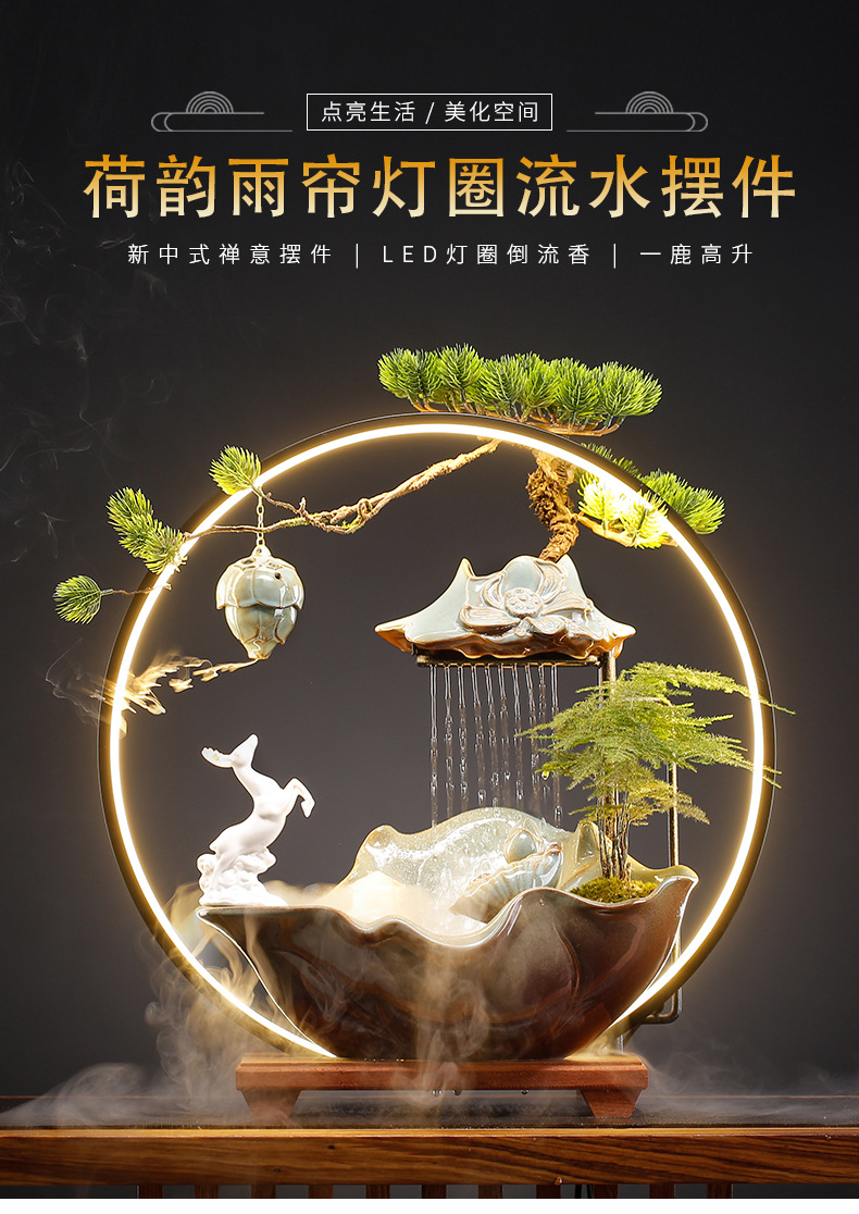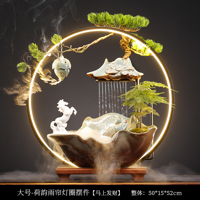 Color: Large-Lotus rain curtain [lucky treasure + incense burner + incense + bamboo + atomization]]