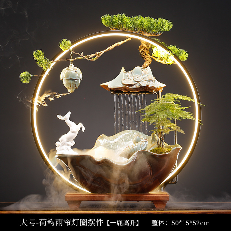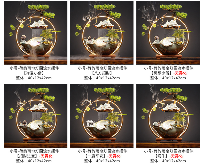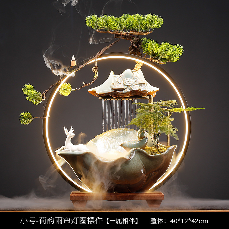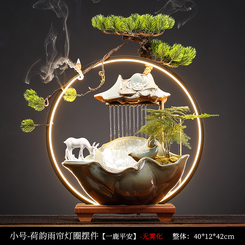 Color: Small size-Lotus rain curtain [a deer makes a fortune + incense + bamboo + atomization]]