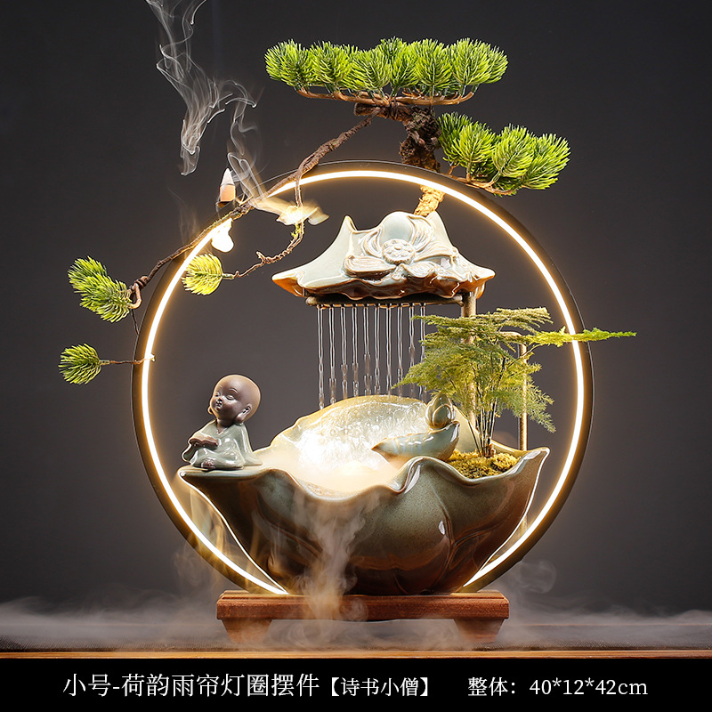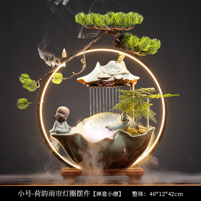 Color: Small size-Lotus rain curtain [Zen monk + incense + bamboo + atomization]]